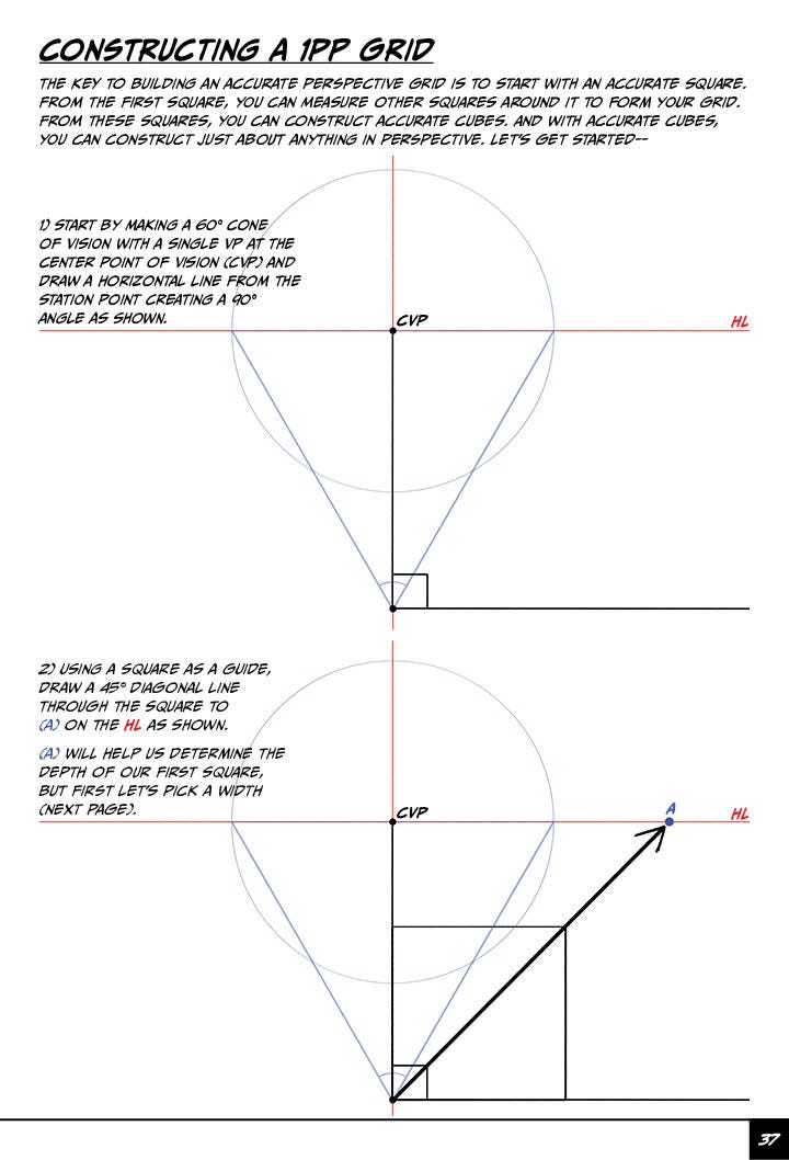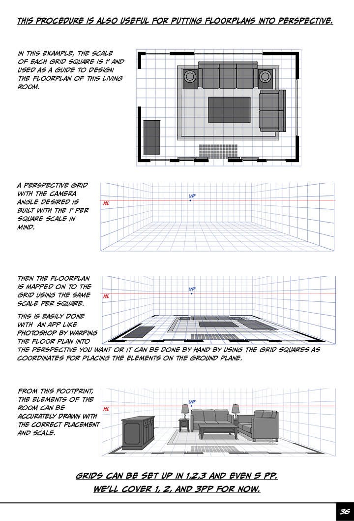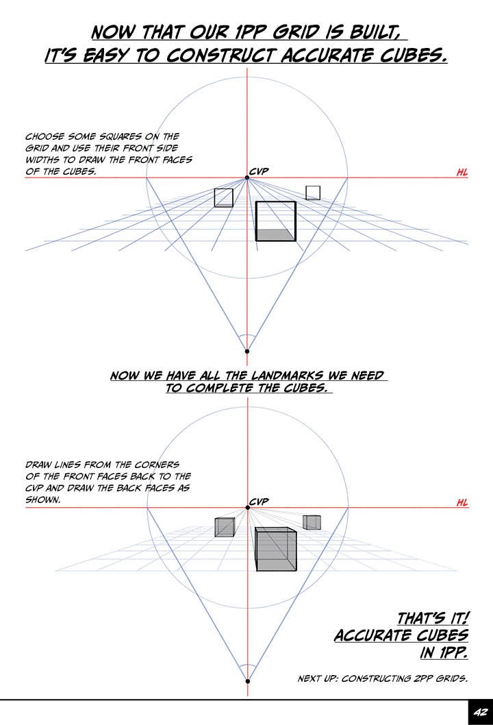 Part 4 is about how to construct and use perspective grids. I just finished the first section which covers 1 point perspective grids.